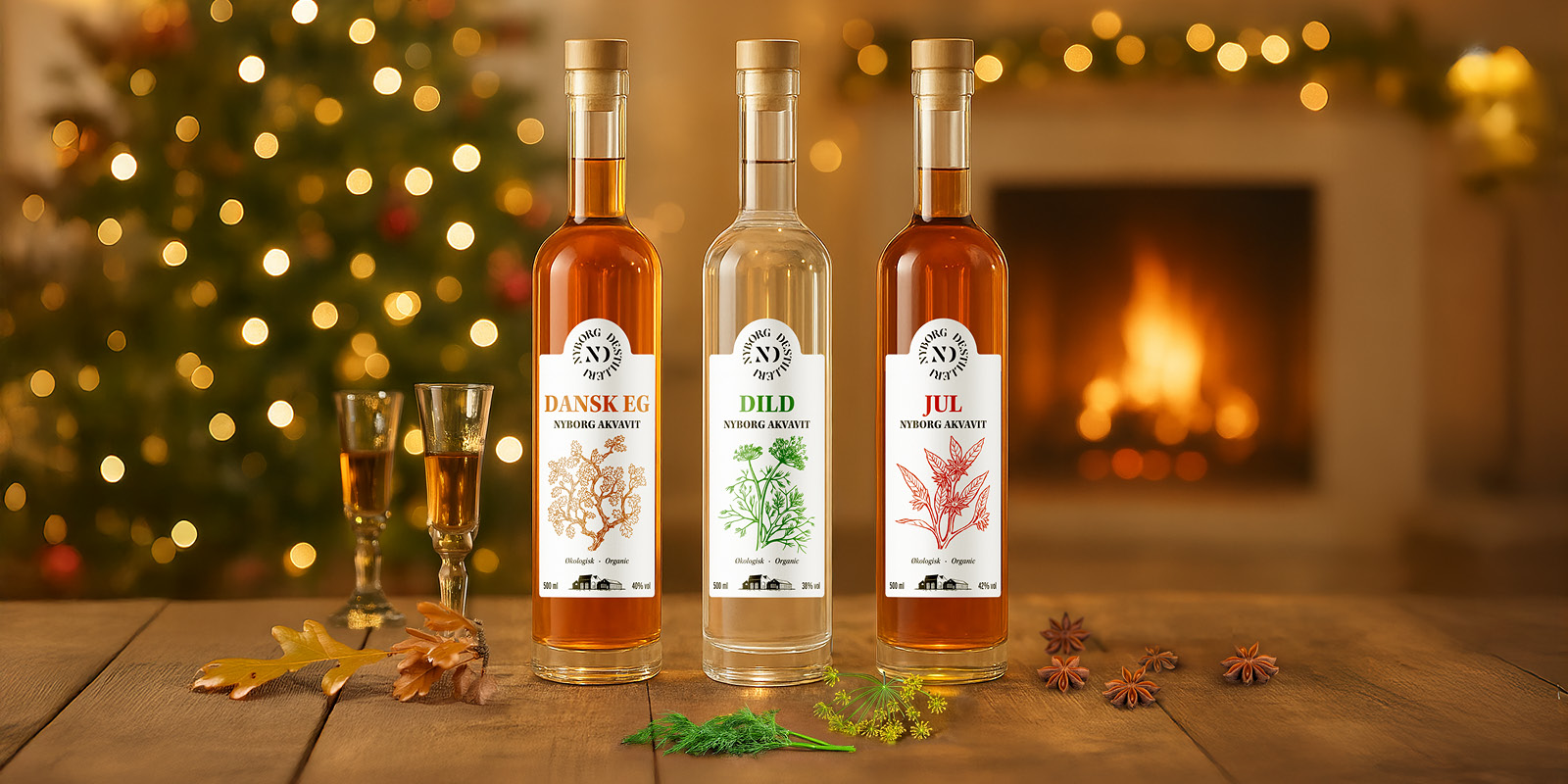 Nyborg Destilleri tilbyder tre forskellige akvavitter i sortimentet. Alle er destilleret med de fineste, økologiske råvarer på vores destilleri i de gamle værkstedsbygninger i Nyborg.