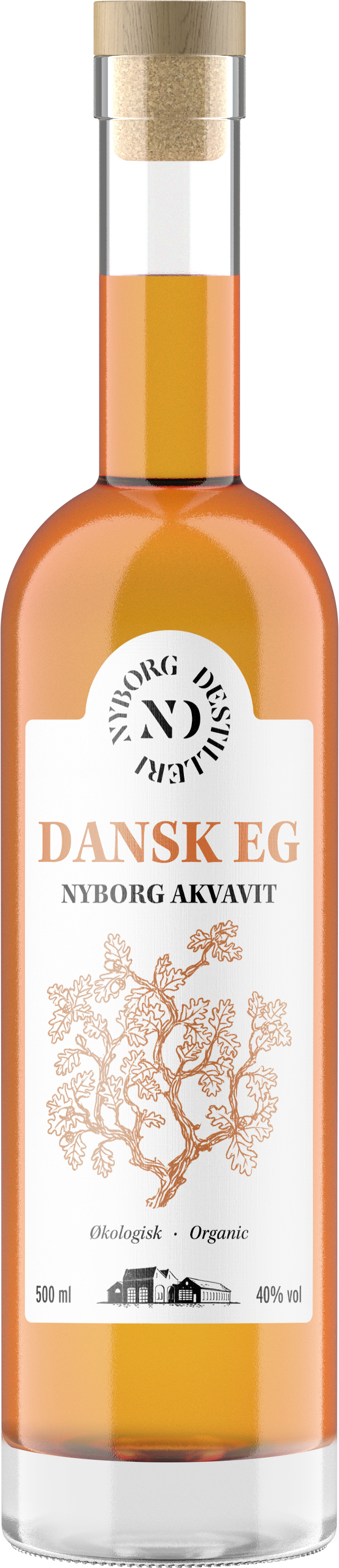 Nyborg Akvavit Eg er en rund og fyldig akvavit med en blød karakter og varme noter fra lagringen på egetræsfade.