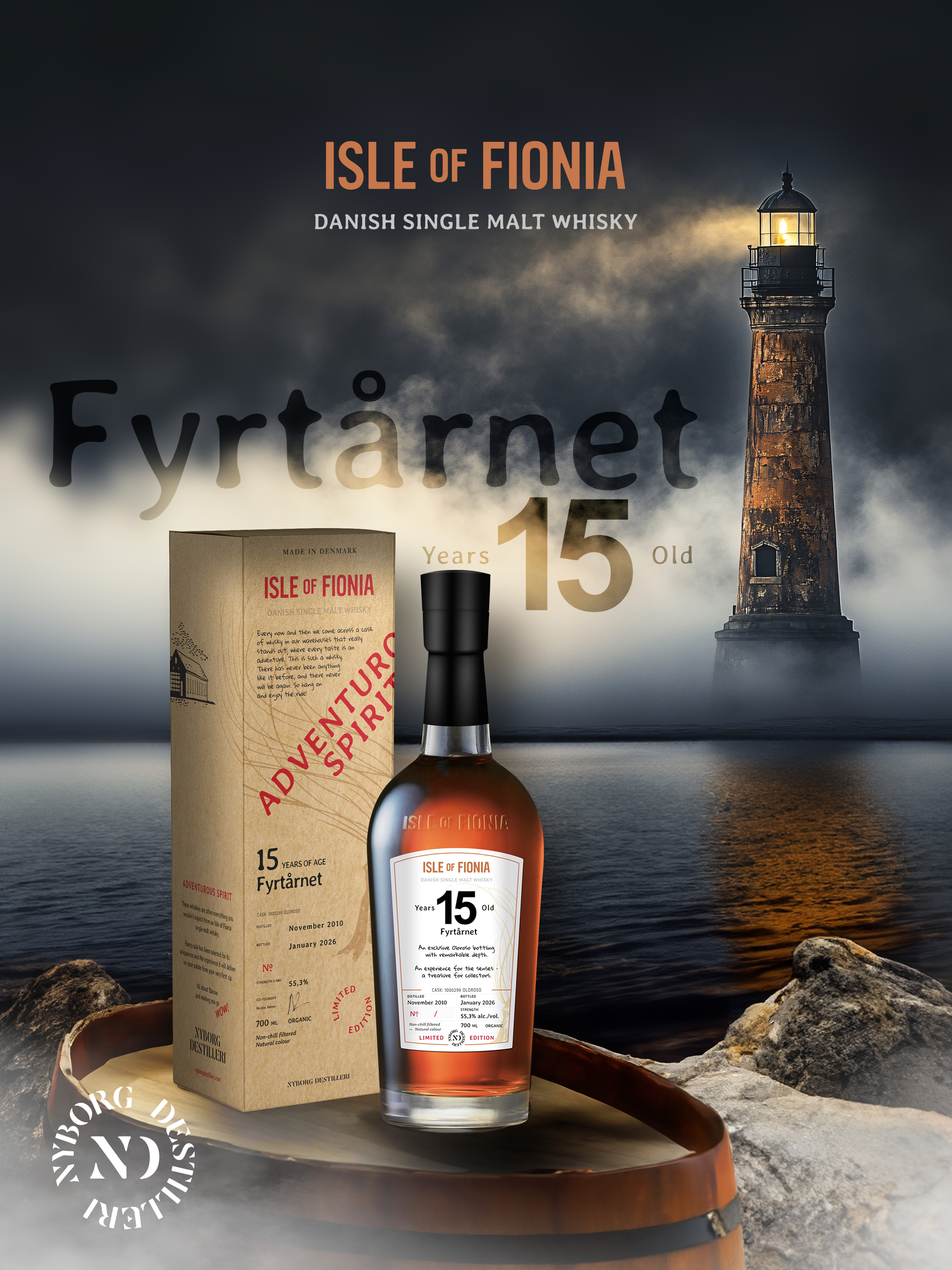 Isle of Fionia - 15 y.o. FYRTÅRNET - Single Malt Danish Whisky 55,3% alk./vol. 700 ml.